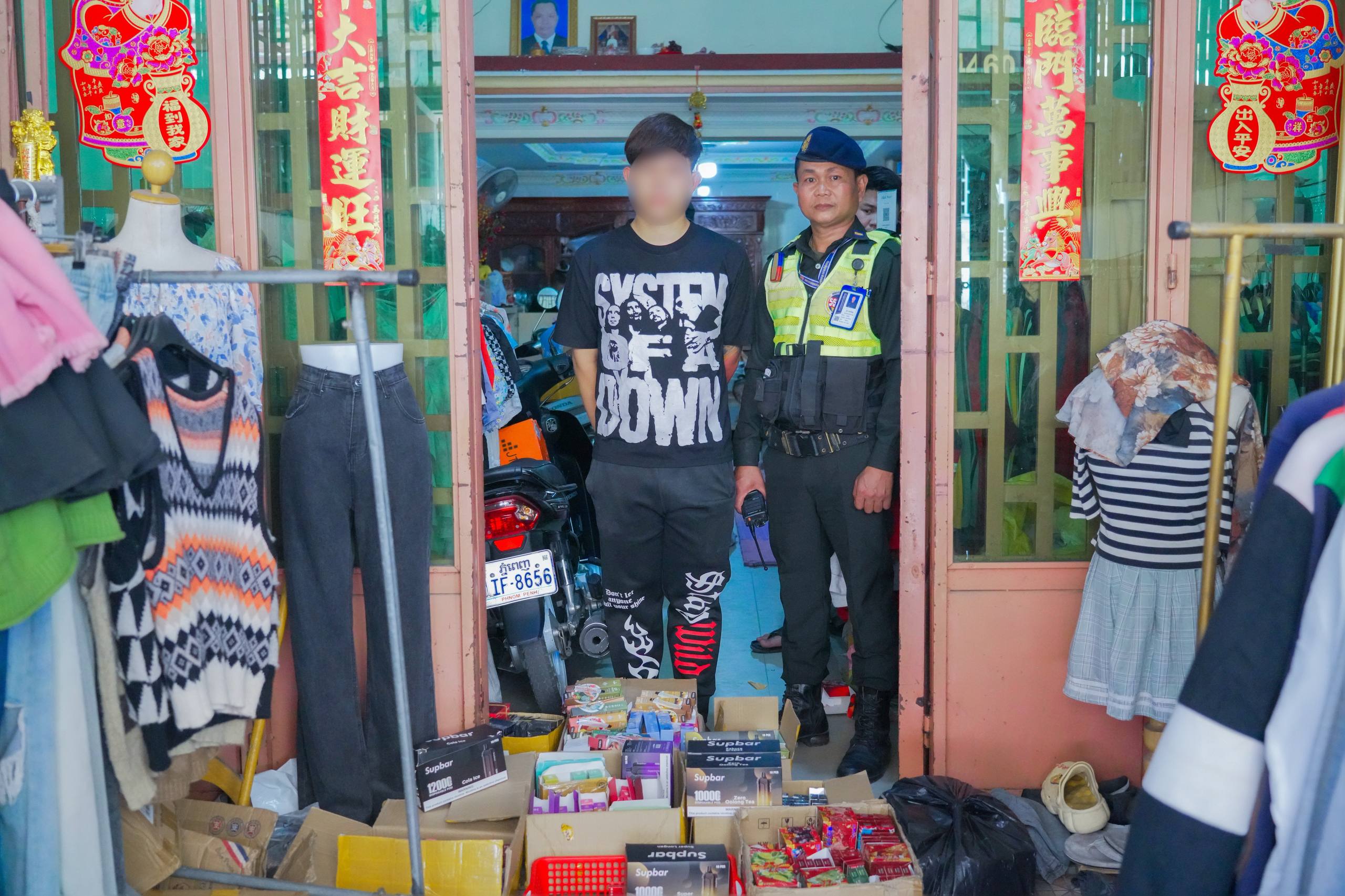 ដោយមានការសហការណ៍ផ្ដល់ព័ត៌មានពីប្រជាពលរដ្ឋតាមរយៈផេកហ្វេសប៊ុករបស់កងរាជអាវុធហត្ថរាជធានីភ្នំពេញ ដែលមានឈ្មោះថា Phnom Penh Gendarmerie នៅវេលាម៉ោង ១៤និង៣០នាទី ថ្ងៃទី៣១ ខែមីនា ឆ្នាំ២០២៦ កម្លាំងអាវុធហត្ថរាជធានីភ្នំពេញ សហការជាមួយកម្លាំងមូលដ្ឋានអាវុធហត្ថខណ្ឌមានជ័យ បានចុះបង្ក្រាបទីតាំង លួចលក់ឧបករណ៍អេឡិចត្រូនិកសម្រាប់ជក់សារធាតុគីមី ១កន្លែង នៅចំណុចហាងលក់ខោអាវជជុះក្បាលគីបនារី ផ្លូវប៉េតុង ភូមិមានជ័យ សង្កាត់ស្ទឹងមានជ័យទី១ ខណ្ឌមានជ័យ រាជធានីភ្នំពេញ និងបានចាប់យកវត្ថុតាងចម្រុះ ប្រមាណជាង ១៣០០គ្រឿង ឃាត់ខ្លួនម្ចាស់ទីតាំង ០១នាក់ នាំយកទៅអង្គភាព ដើម្បីចាត់ការតាមនីតិវិធីច្បាប់។