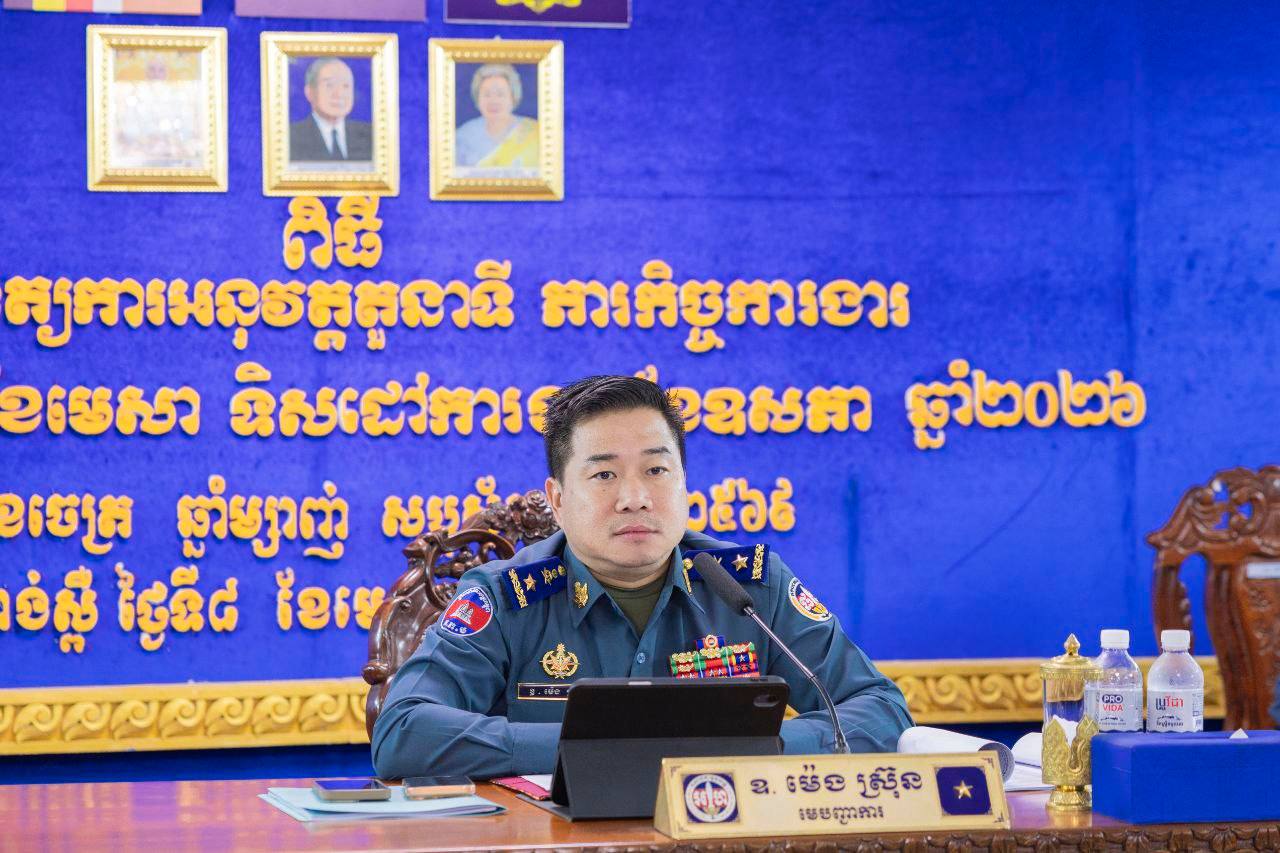ខេត្តកំពង់ស្ពឺ ៖ ព្រឹកថ្ងៃ៦រោច ខែចេត្រ ឆ្នាំម្សាញ សប្តស័ក ព.ស ២៥៦៩ ត្រូវនិងថ្ងៃទី០៨ ខែមេសា ឆ្នាំ២០២៦ នៅបញ្ជាការដ្ឋានកងរាជអាវុធហត្ថខេត្តកំពង់ស្ពឺ លោក ឧត្តមសេនីយ៍ត្រី ម៉េង ស្រ៊ុន មេបញ្ជាការ កងរាជអាវុធហត្ថខេត្តកំពង់ស្ពឺ បានអញ្ជើញជាអធិបតីភាពក្នុងពិធីប្រជុំផ្សព្វផ្សាយរបាយការណ៍បូកសរុបលទ្ធផលការងារប្រចាំខែមេសា និងលើកទិសដៅការងារខែឧសភា ឆ្នាំ២០២៦ និងផ្សព្វផ្សាយសេចក្ដីព្រាងច្បាប់ស្ដីពីការប្រឆាំងការឆបោកតាមប្រព័ន្ធបច្ចេកវិទ្យា (Scam Online) និងផ្សព្វផ្សាយផែនការការពារសន្តិសុខ សុវត្ថិភាព រក្សាសណ្ដាប់ធ្នាប់ ក្នុងព្រឹត្តការណ៍សង្ក្រាន្តខេត្តកំពង់ស្ពឺ ក្នុងឱកាសបុណ្យចូលឆ្នាំថ្មីប្រពៃណីជាតិខ្មែរ ឆ្នាំ២០២៦ ។